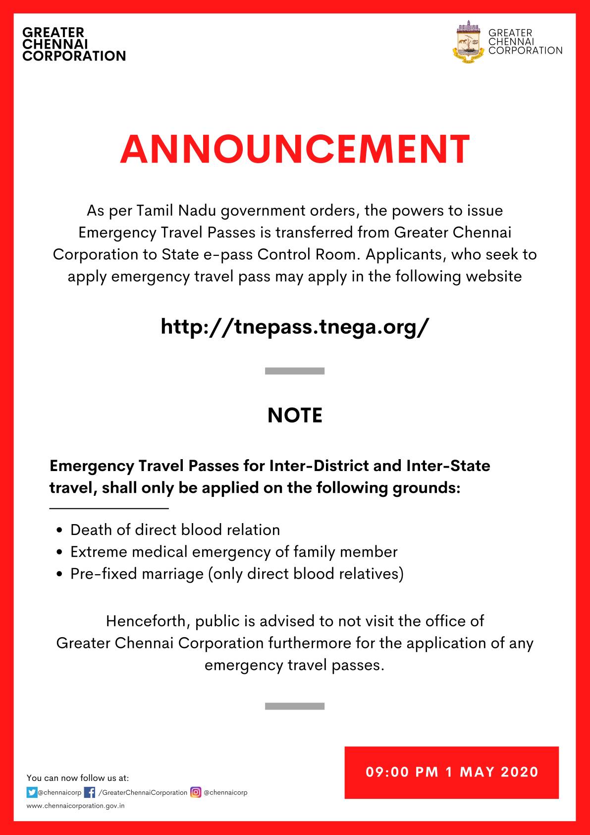 Live Chennai The Form For Issue Of Covid19 E Pass Attending A