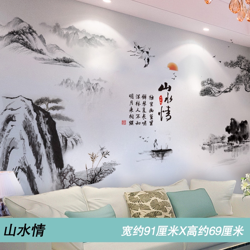 3d Tiga Dimensi Cina Gaya Ruang Tamu Background Dinding Stiker